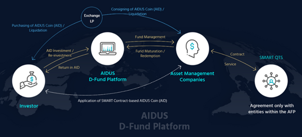 - Pengoperasian platform ini akan dilakukan dengan mengorbankan beberapa komponen - layanan QTS untuk sistem perdagangan FX, AIDUS D-Fund Platform dan token platform AIDUS.